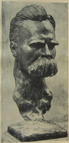Donndorf, Karl: „Nietzsche-Büste“, in: Wright, Willard Huntington: What Nietzsche taught. New York: Huebsch 1915, Frontispiz.