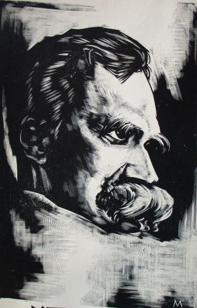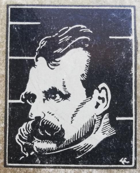 Müller, Hans Alexander: „Nietzsche“ [Holzschnitt], in: Mann, Heinrich (Hg.): The living thoughts of Nietzsche. Philadelphia: David McKay Company 1939, Frontispiz.